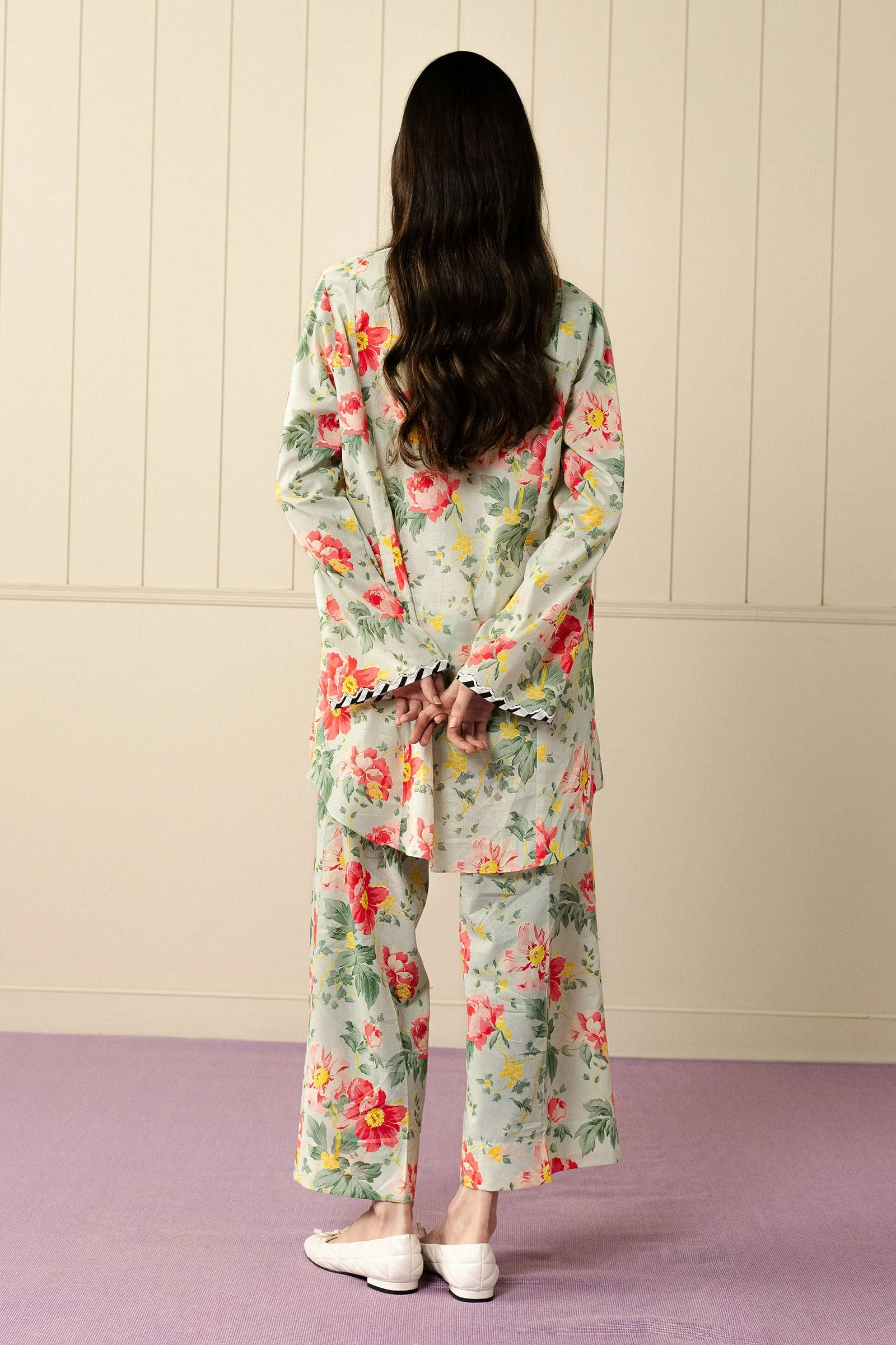 A loose-fit cambric kurta highlighted with delicate embroidery along the neckline, paired with easy cropped cambric pants. Effortless and refined, this look is made for understated days with a touch of quiet confidence.