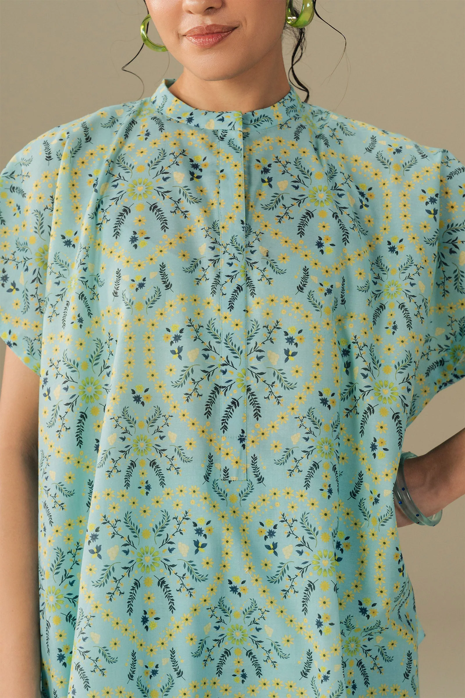 Oversized, relaxed, and effortlessly chic. This printed kurta with dropped shoulders is paired with an embroidered shalwar, blending comfort with statement-making details. Bright, modern, and full of effortless energy.